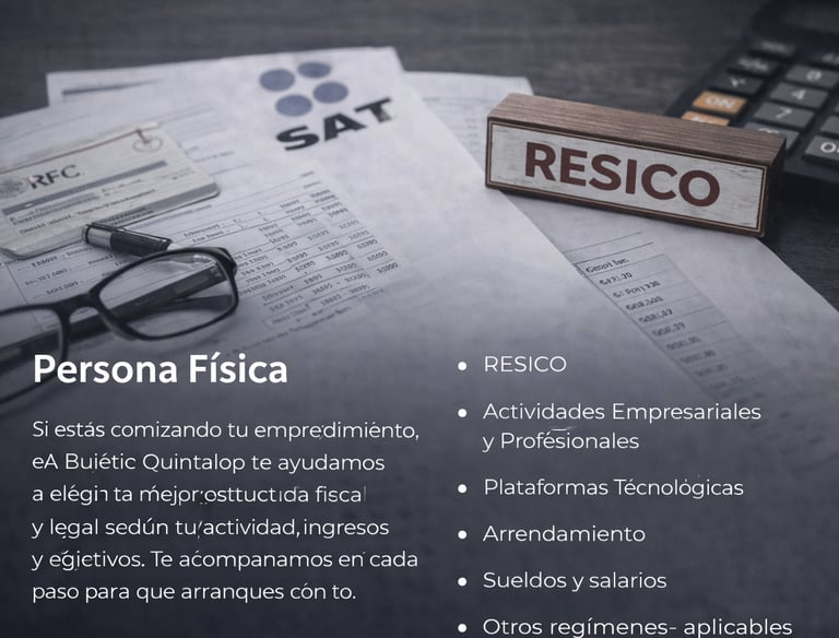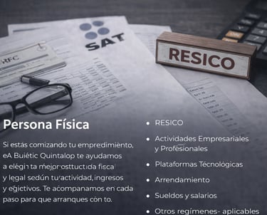 Si estás comenzando un emprendimiento, en Bufete Quintalop te ayudamos a elegir la mejor estructura fiscal y legal según tu actividad, ingresos y objetivos. Te acompañamos en cada paso para que arranques con bases sólidas, evites errores costosos y cumplas correctamente con tus obligaciones.